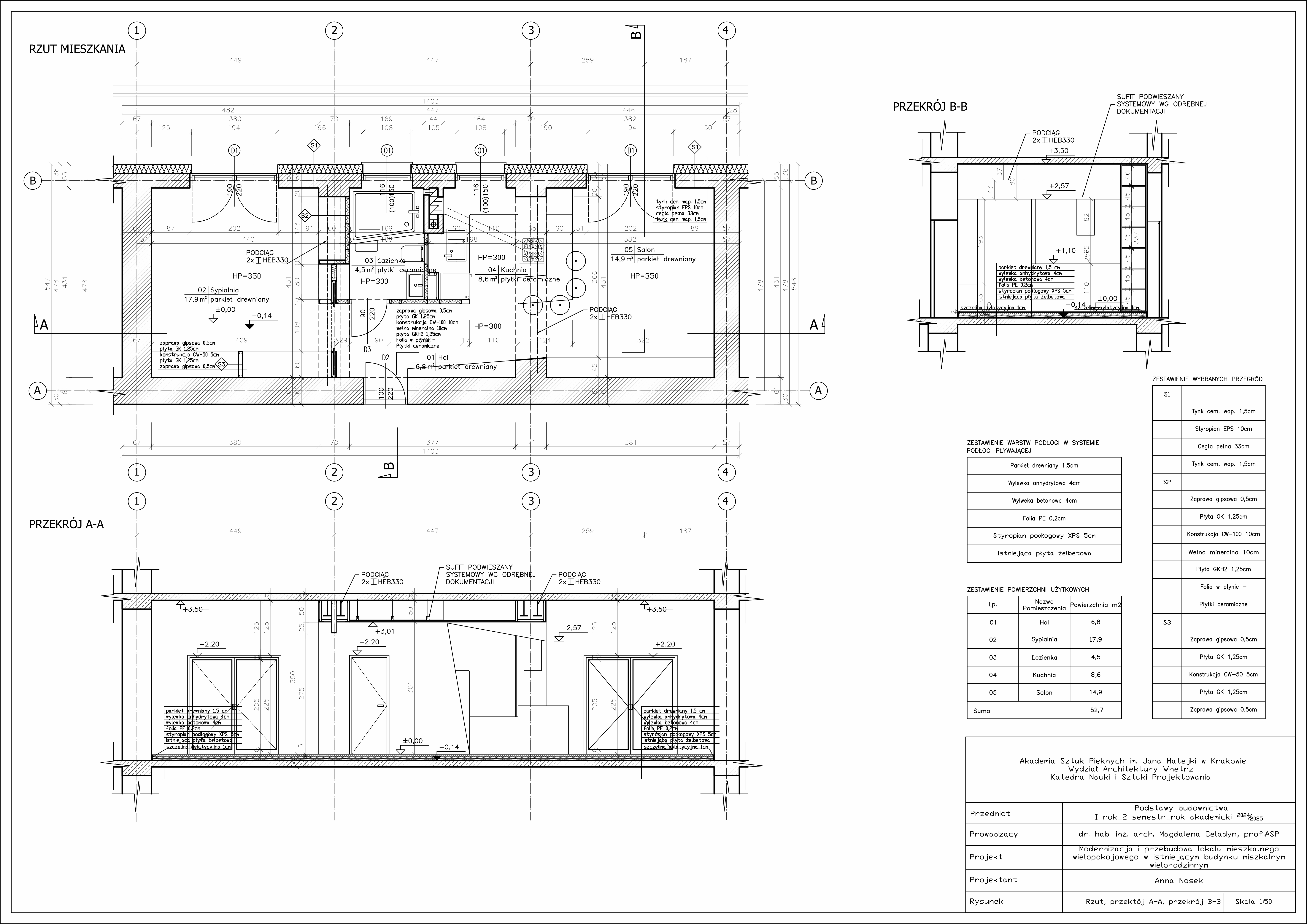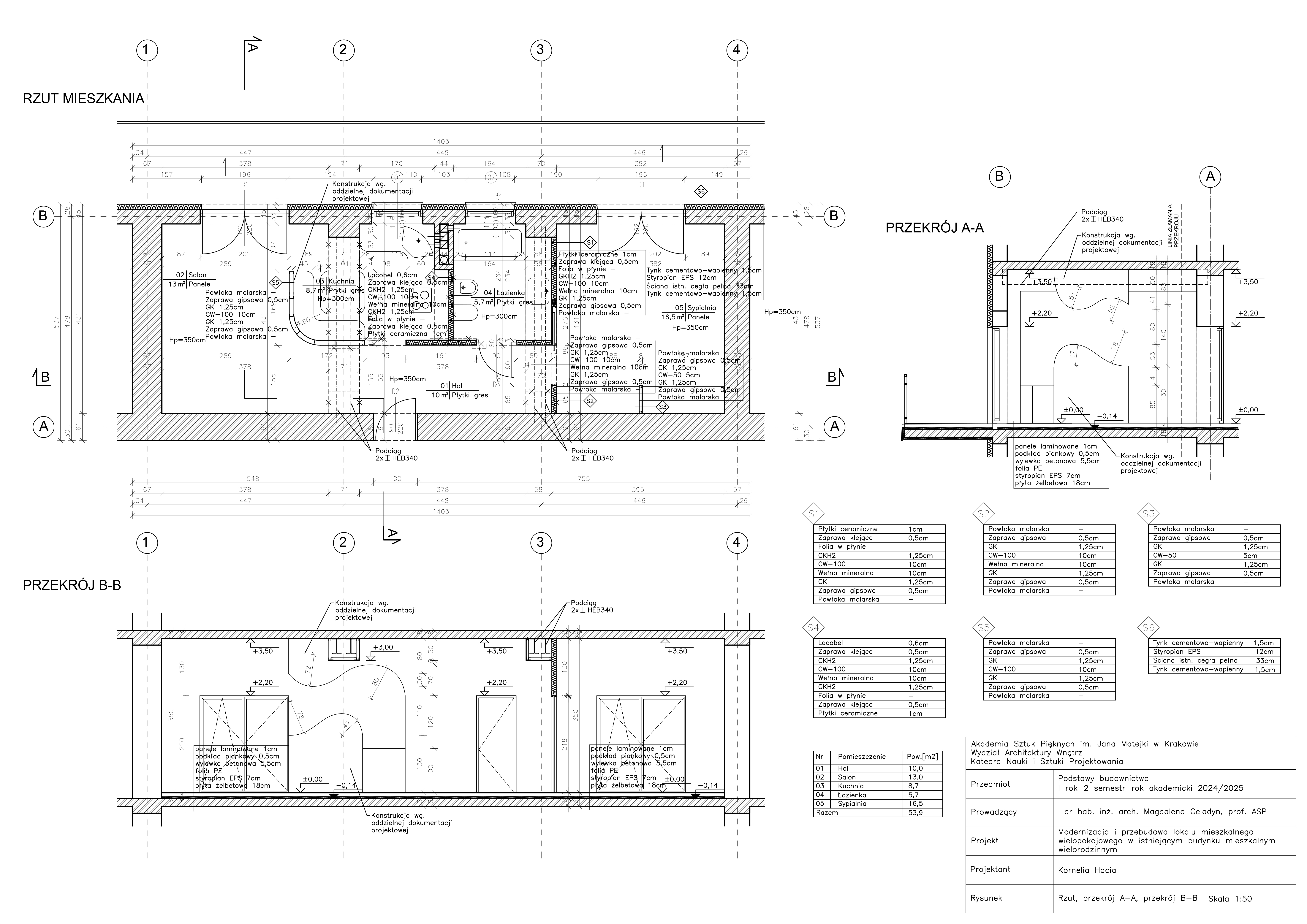 Modernizacja i przebudowa istniejącego lokalu mieszkalnego w budynku mieszkalnym wielorodzinnym. Zastosowanie konstrukcji stalowych cienkoprzekrojowych w kształtowaniu nowych wielofunkcyjnych wewnętrznych przegród.