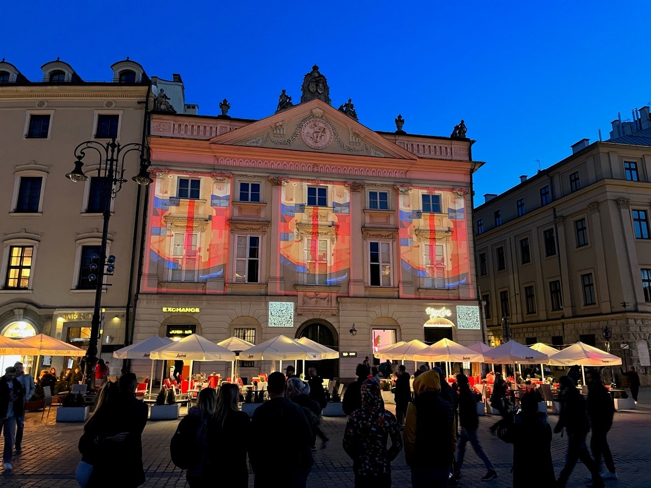 W dniu 15.04.2023 na Rynku Główny w Krakowie punktualnie o godzinie 20.00.można było zobaczyć ︎︎︎︎ Mapping na fasadzie Pałacu Potockich: "Jerzy Nowosielski. Rzeczywistość przemieniona”.