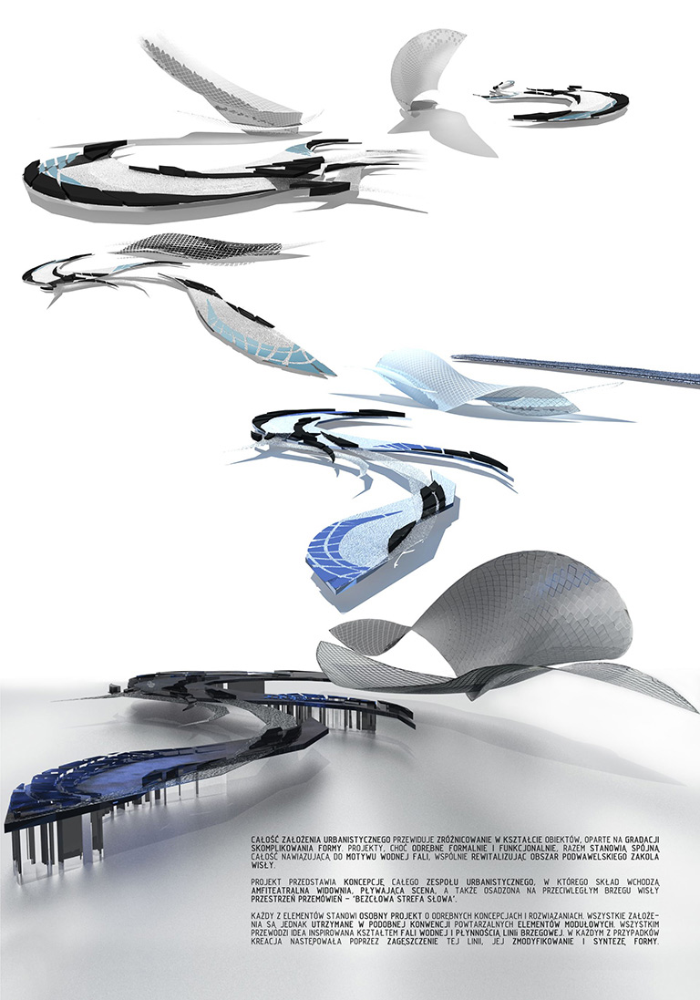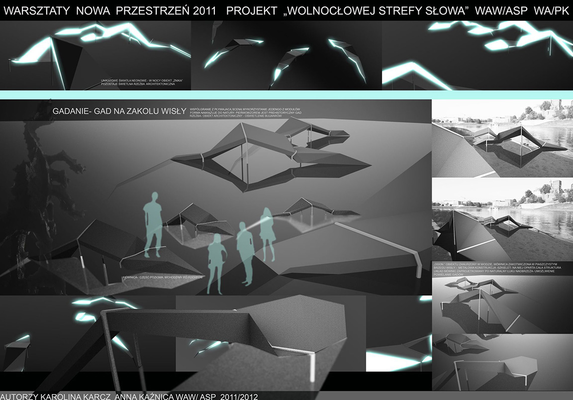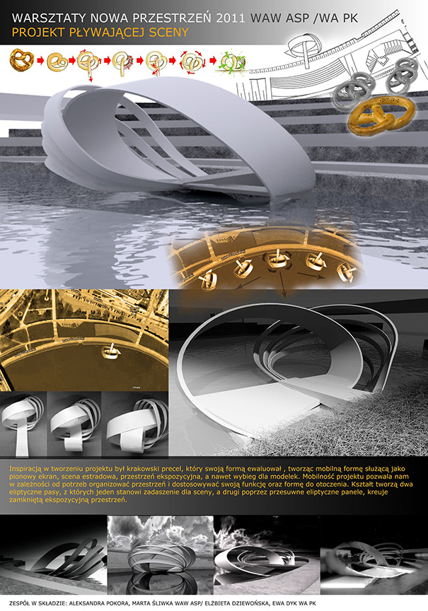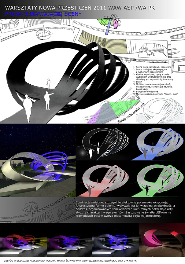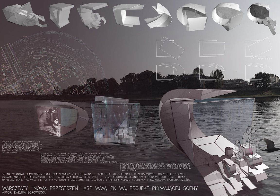 W trwających od 14 do 16 listopada warsztatach wzięło udział ponad trzydziestu studentów, którzy utworzyli osiem zespołów projektowych. Zadanie, jakie przed nimi postawiono, polegało na zaprojektowaniu „Pływającej Sceny” i „Wolnocłowej Strefy Słowa” (czyli Speaker’sCorner), w miejscu tak charakterystycznym dla Krakowa jak bulwary wiślane — bulwar Czerwieński i Poleski.